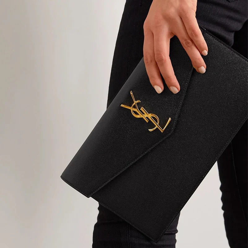 Toteme T-Lock Clutch Grained Leather Black Silver